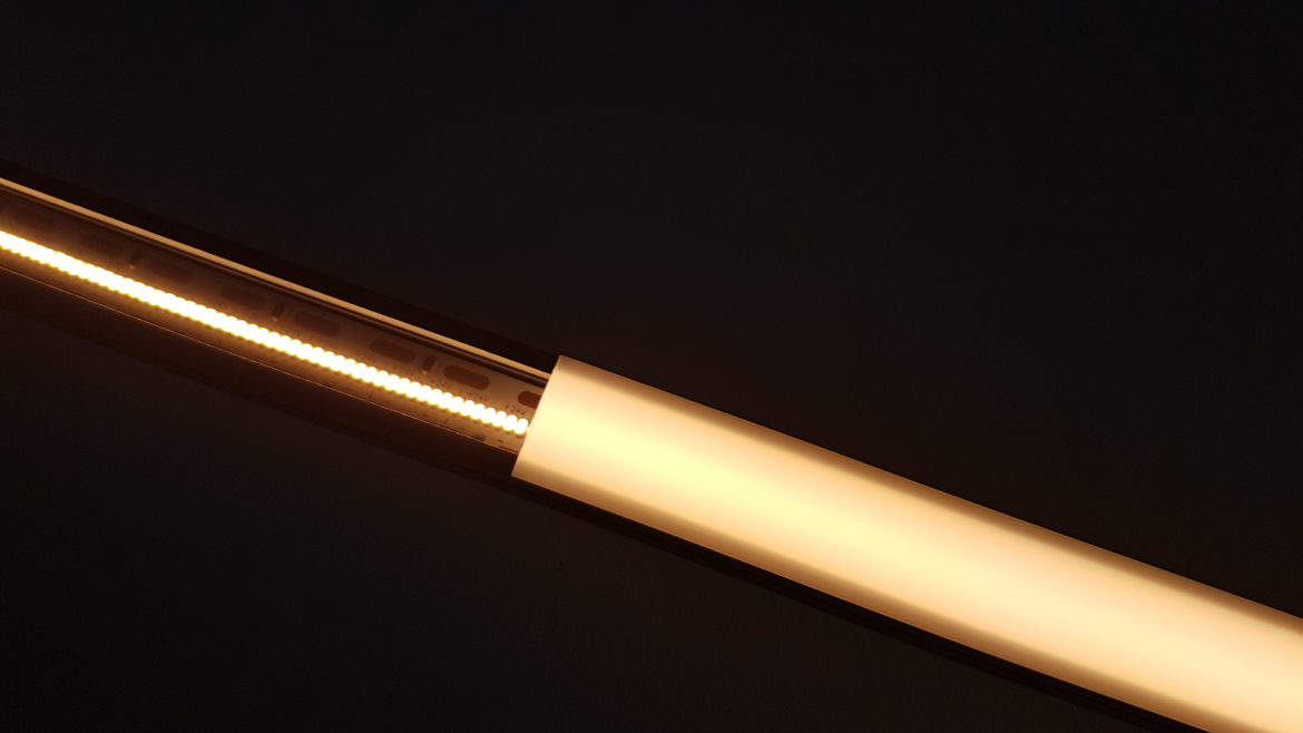 Ici présenté dans la version 2700K dans un profilé de 7mm d’épaisseur seulement (ref 5612P Profil MINI) .